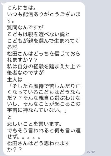 久々にやります Q&Aコーナー♪♪ 寄せられた質問に お答えしていきますよ〜〜〜! 今回の質問はこちら。 これはよく聞かれる質問なんだけど、 あくまで僕の考え方として答えていきます。 結論から言うと、 子どもは親を選んで生まれてきます。 もっと言うと、…